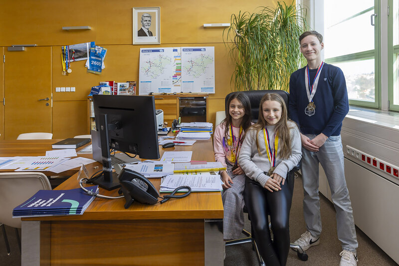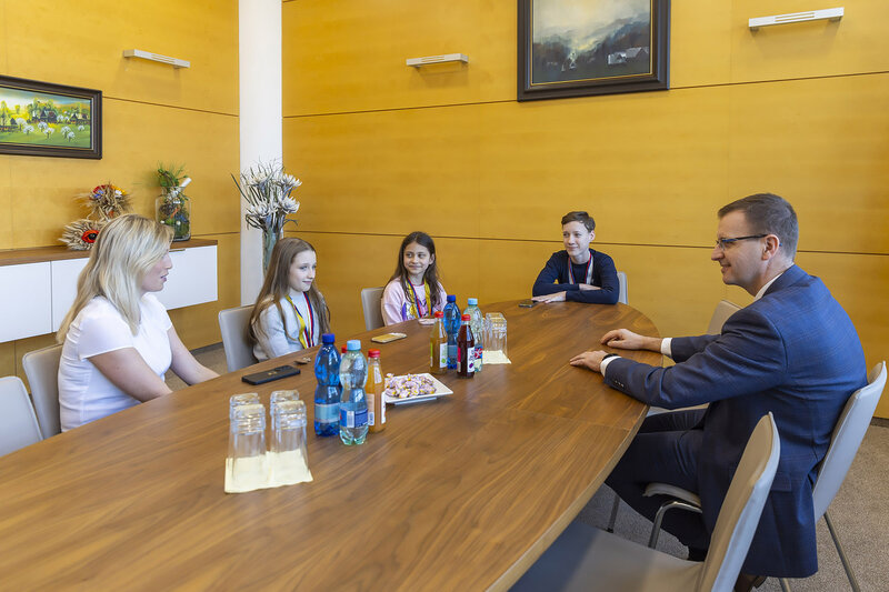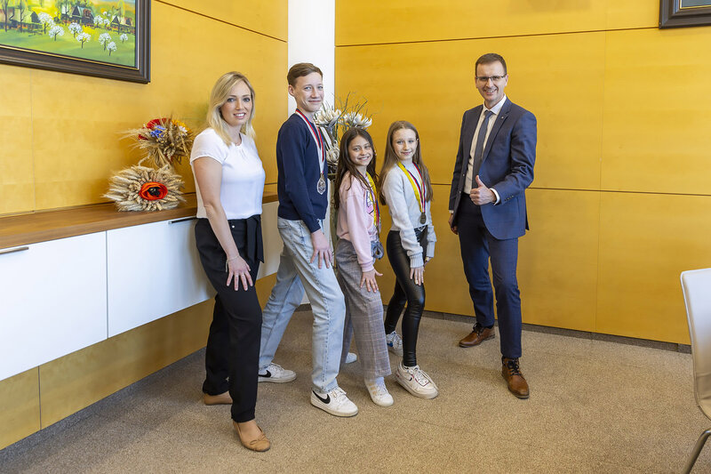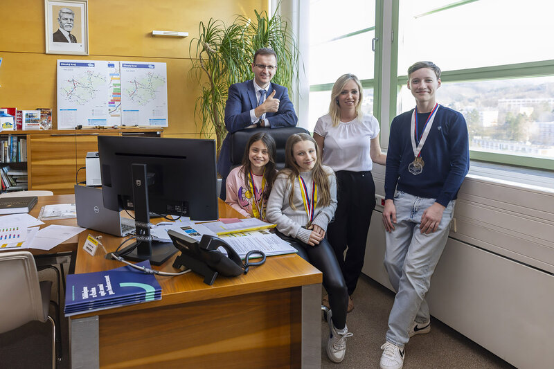 ZLÍNSKÝ KRAJ – Mladé medailisty z mistrovství světa a Evropy v aerobicu Barboru Měřilovou, Nelly Schmiedovou a Matěje Mahdala, přivítal 6. března v sídle Zlínského kraje hejtman Radim Holiš.