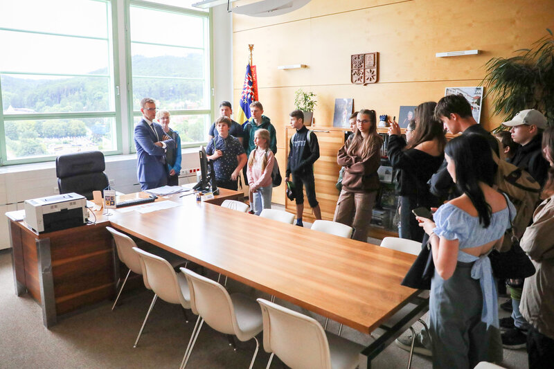 Návštěvu žen ze Zubří a po nich i zástupce školních parlamentů ze Základní školy Videčská v Rožnově pod Radhoštěm a Střední uměleckoprůmyslové školy sklářské Valašské Meziříčí přijal dnes na krajském úřadě hejtman Radim Holiš. Seznámil je s fungováním krajské samosprávy, přiblížil oblasti, za které kraj zodpovídá, představil jeho organizace i nejbližší plány, například modernizaci Krajské nemocnice Tomáše Bati ve Zlíně. Poté s nimi v neformální atmosféře debatoval a odpovídal na dotazy. Účastníky setkání pak čekala projížďka Baťovou pojízdnou kanceláří a návštěva terasy budovy s výhledem na město.