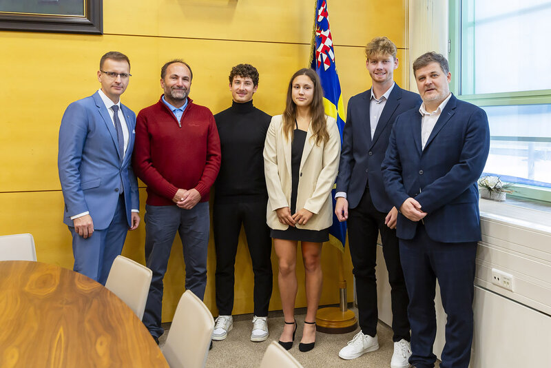 Mladé kanoisty z Ostrožské Nové Vsi, kteří dosáhli vynikajících úspěchů na letošním Mistrovství Evropy juniorů a do 23 let, přijali dnes v sídle Zlínského kraje hejtman Radim Holiš společně s radním pro mládež a sport Jiřím Jarošem. Kláru Studničkovou, Ondřeje Prchlíka a Jiřího Zalubila na krajský úřad doprovodil jejich trenér Vít Pjajčík.