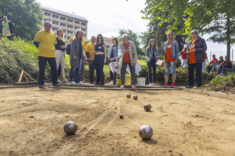 Turnaj seniorů ve hře pétanque hostil v úterý 11. června už tradičně Domov pro seniory Burešov ve Zlíně. Zúčastnilo se ho celkem 12 tříčlenných týmů složených z klientů domovů pro seniory z celého Zlínského kraje, které v příjemné a přátelské atmosféře změřily své síly na dvou venkovních hřištích. Nad akcí převzala záštitu statutární náměstkyně hejtmana Zlínského kraje pro sociální oblast Hana Ančincová, která přišla účastníky turnaje osobně pozdravit a povzbudit.