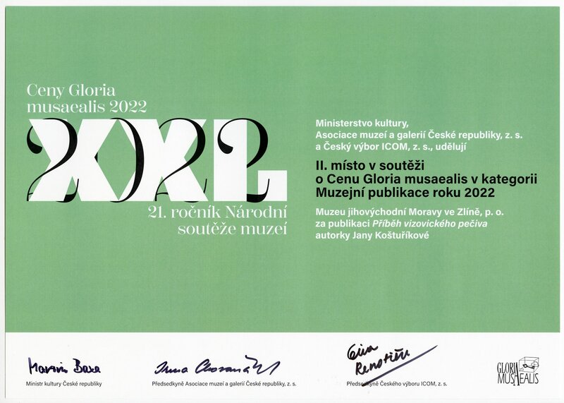 Muzeum jihovýchodní Moravy ve Zlíně i Slovácké muzeum v Uherském Hradišti mohou slavit. Obě krajské kulturní organizace totiž uspěly v Národní soutěži muzeí Gloria musaealis 2022. Muzeum jihovýchodní Moravy získalo druhé místo v kategorii Muzejní publikace roku za vydání knihy Příběh vizovického pečiva, Slovácké muzeum obdrželo Cenu Českého výboru ICOM za výstavbu Cyrilometodějského centra a revitalizaci národních kulturních památek Velké Moravy. Slavnostní vyhlášení cen se uskutečnilo ve čtvrtek 25. května v Obecním domě v Praze.