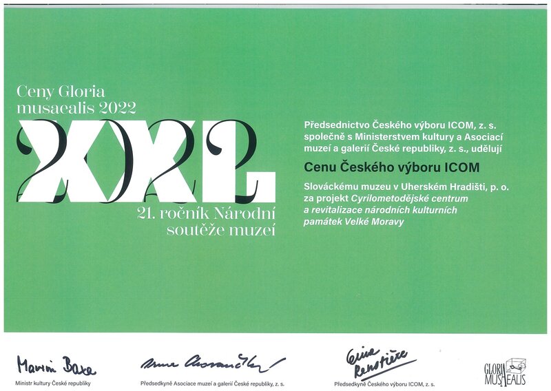 Ocenění v konkurenci 20 velkých muzejních projektů ČR získalo rovněž Slovácké muzeum v Uherském Hradišti. Za projekt „Cyrilometodějské centrum a revitalizace národních kulturních památek Velké Moravy“ obdrželo Cenu Českého výboru ICOM. „Tímto projektem se Slováckému muzeu podařilo dosáhnout dalšího významného cíle v šíření povědomí o významu cyrilometodějského odkazu,“ říká ředitel Slováckého muzea Ivo Frolec.