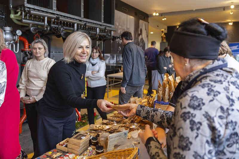 Během dne se ve druhé etáži Baťova mrakodrapu uskutečnil také dobročinný jarmark. Zájemci si mohli zakoupit originální ručně vyráběné produkty z několika chráněných dílen a sociálních podniků ze Zlínského kraje: dárky v podobě keramických výrobků, přírodních mýdel, vonných svíček, čokoládových pralinek či šitých hraček, ale k dostání byly například i adventní věnce a vánoční ozdoby.