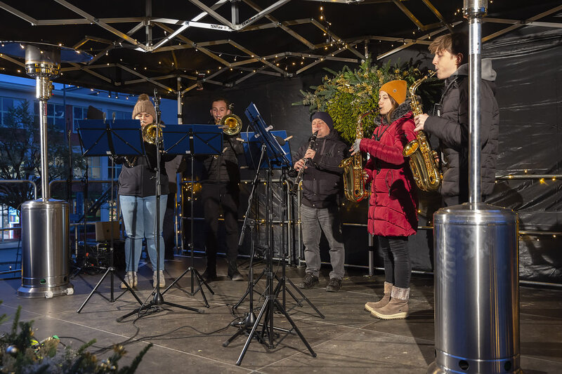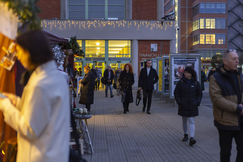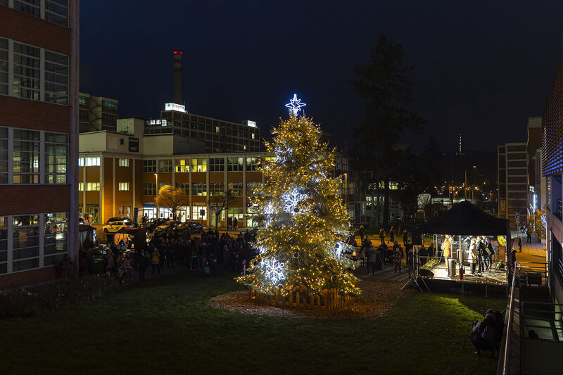 Před Baťovým mrakodrapem už svítí vánoční strom. Program doplnil i dobročinný jarmark.