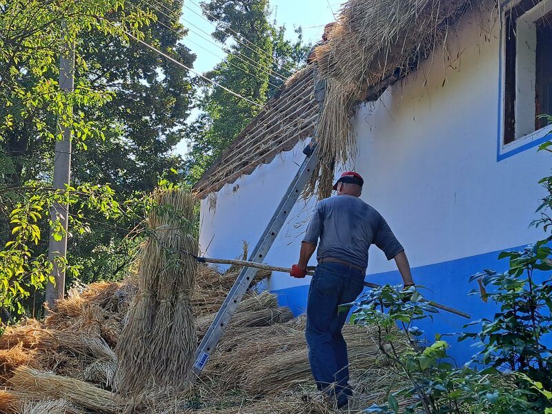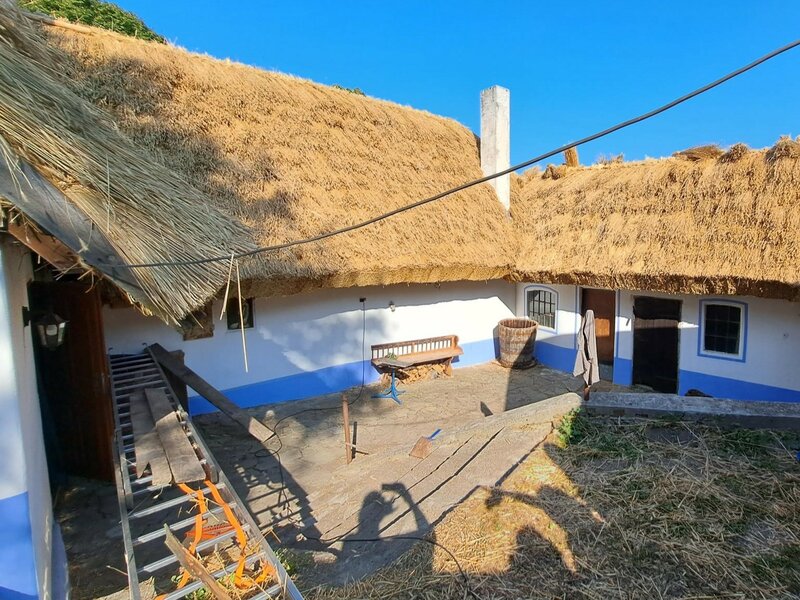 Na výměnu doškové krytiny se můžete podívat v reportáži České televize: https://www.ceskatelevize.cz/porady/10122427178-udalosti-v-regionech-brno/323281381990822/cast/995687/.