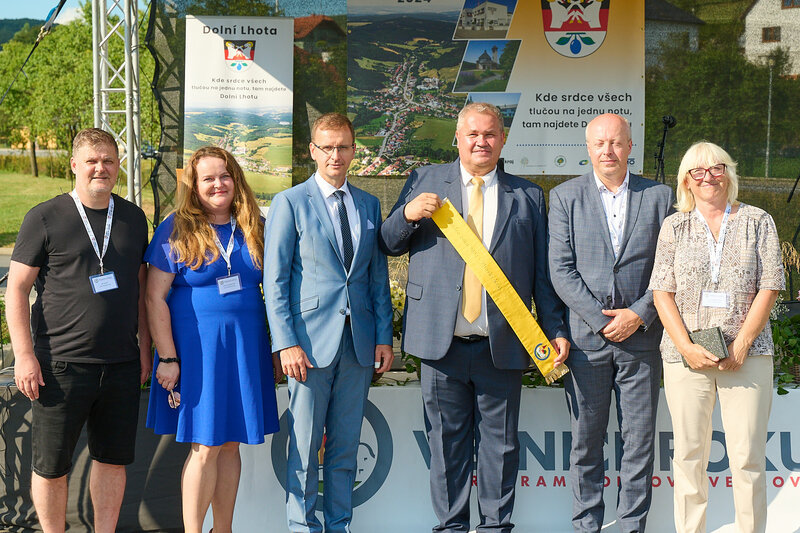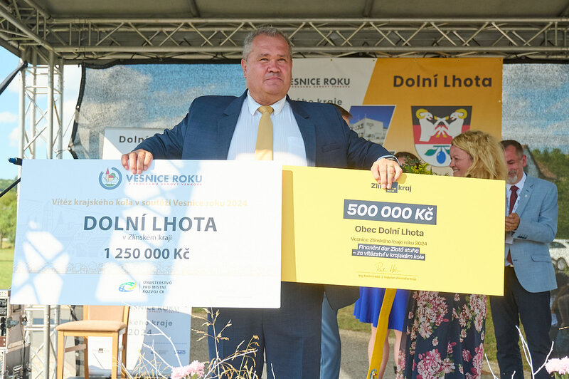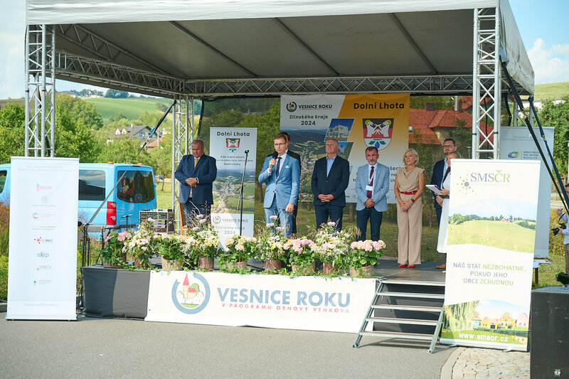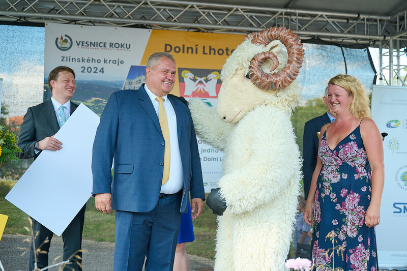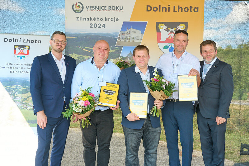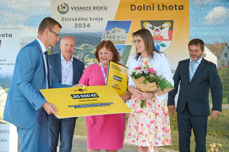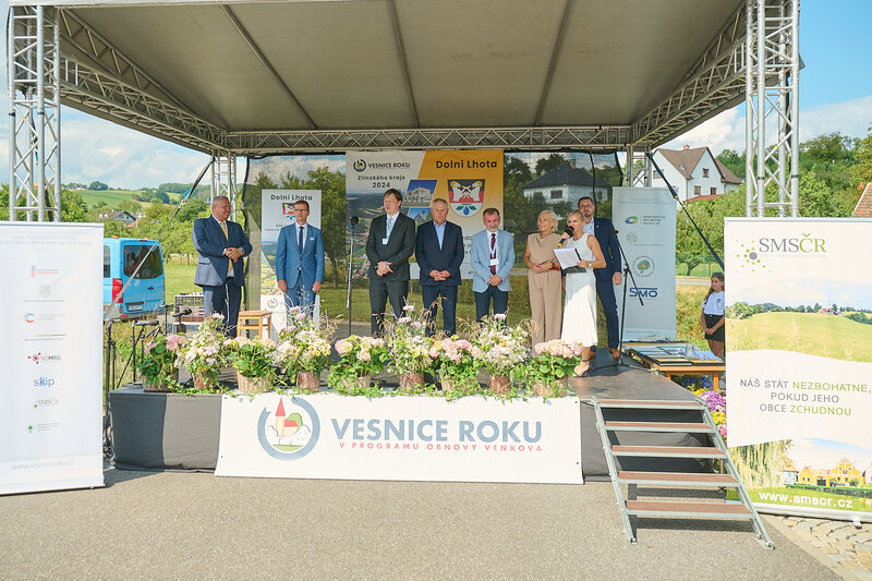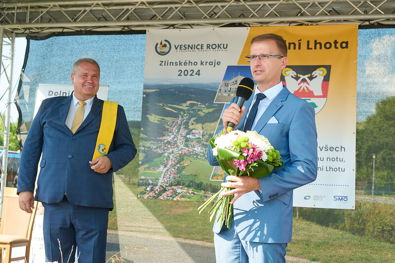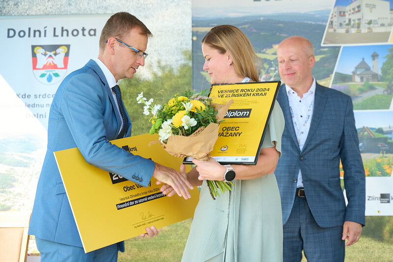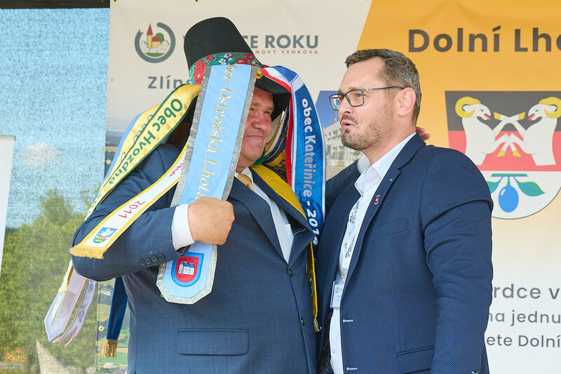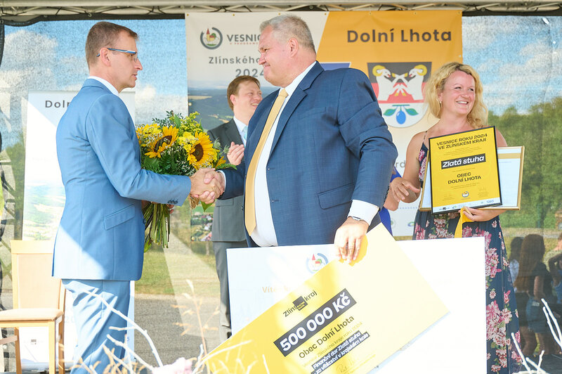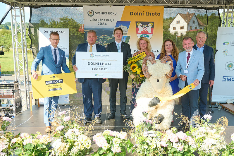 ZLÍNSKÝ KRAJ – Slavnostní předání ocenění Vesnice roku Zlínského kraje 2024 se v sobotu 10. srpna uskutečnilo v Dolní Lhotě, tedy letošní vítězné obci. Zlatou stuhu a putovní klobouk za vítězství v soutěži si převzal starosta Jaroslav Masař z rukou hejtmana Radima Holiše za účasti zástupců vyhlašovatelů soutěže, tedy Ministerstva zemědělství, Ministerstva pro místní rozvoj, Spolku pro obnovu venkova, Svazu měst a obcí ČR a dalších hostů. Převzít ceny si do Dolní Lhoty přijeli také představitelé dalších oceněných obcí.