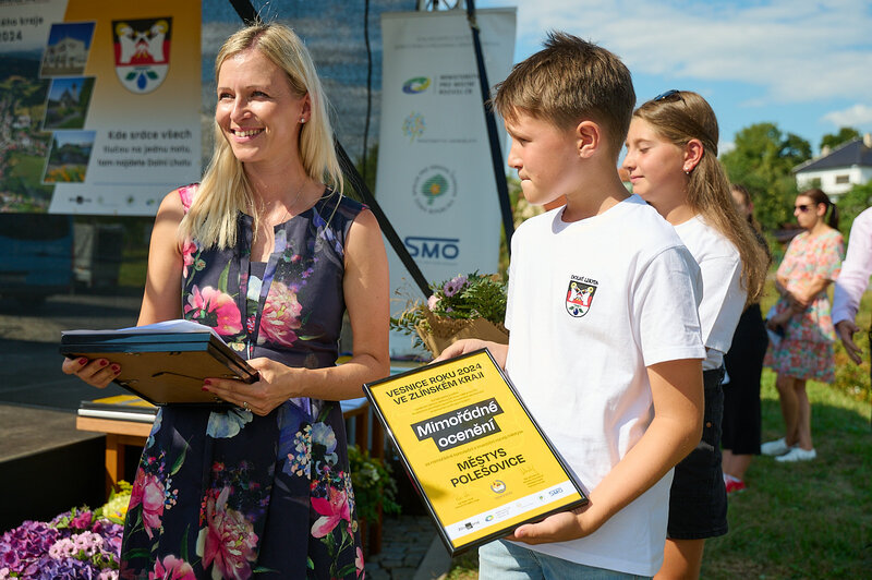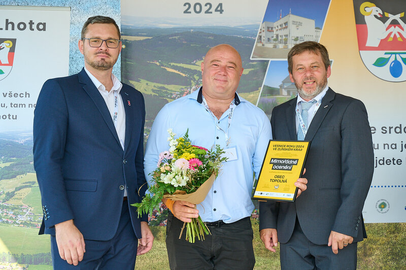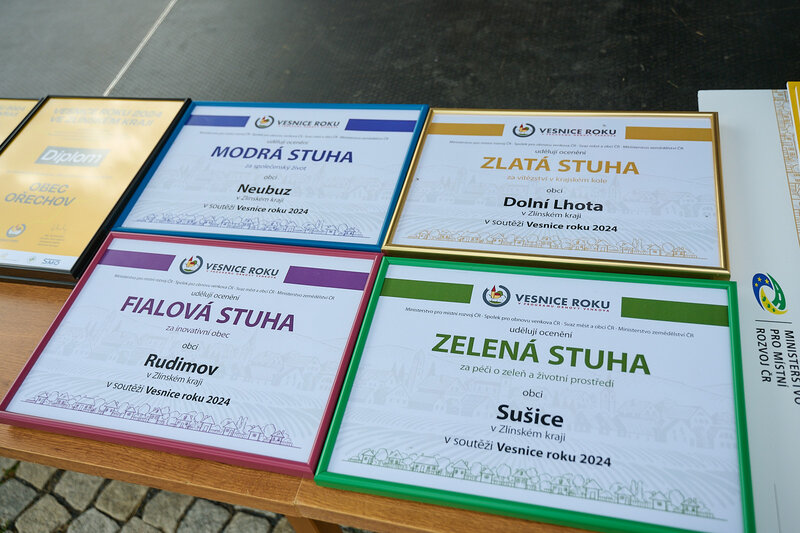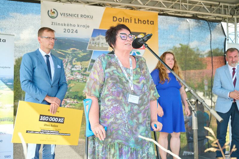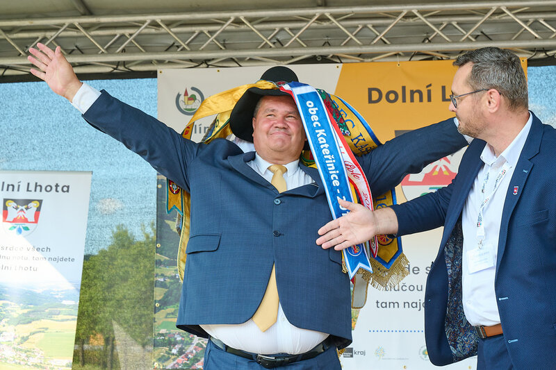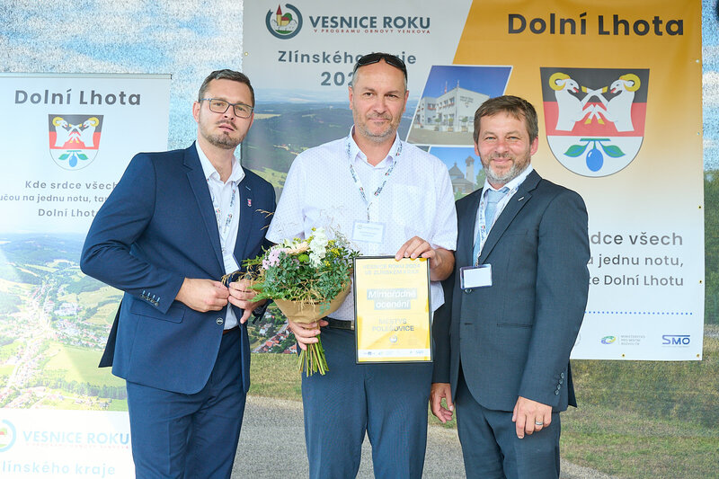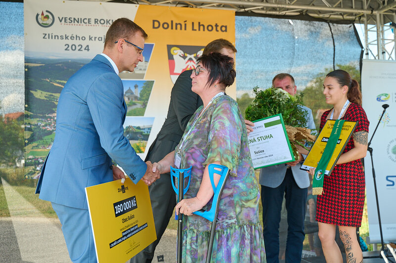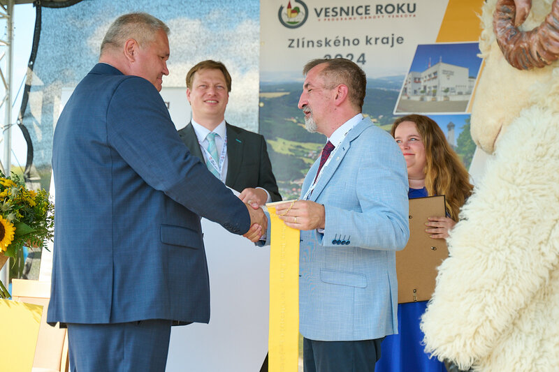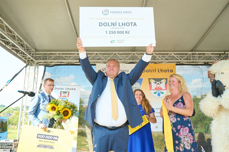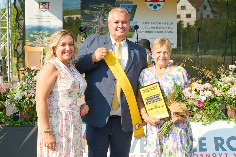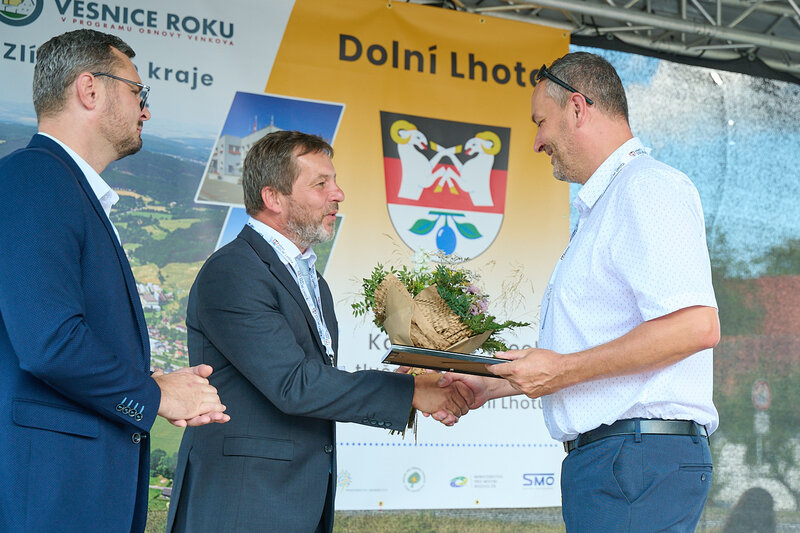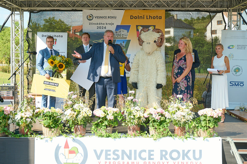 ZLÍNSKÝ KRAJ – Slavnostní předání ocenění Vesnice roku Zlínského kraje 2024 se v sobotu 10. srpna uskutečnilo v Dolní Lhotě, tedy letošní vítězné obci. Zlatou stuhu a putovní klobouk za vítězství v soutěži si převzal starosta Jaroslav Masař z rukou hejtmana Radima Holiše za účasti zástupců vyhlašovatelů soutěže, tedy Ministerstva zemědělství, Ministerstva pro místní rozvoj, Spolku pro obnovu venkova, Svazu měst a obcí ČR a dalších hostů. Převzít ceny si do Dolní Lhoty přijeli také představitelé dalších oceněných obcí.