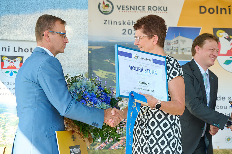 Modrou stuhu, která je oceněním za společenský život v obci, obdržela Neubuz. Porotci vysoce hodnotili velké množství pestrých činností spolků i obce a silnou vzájemnou pospolitost občanů. S oceněním je spojena rovněž odměna ve výši 800 tisíc korun od Ministerstva pro místní rozvoj, ke které přidá 160 tisíc korun Zlínský kraj.