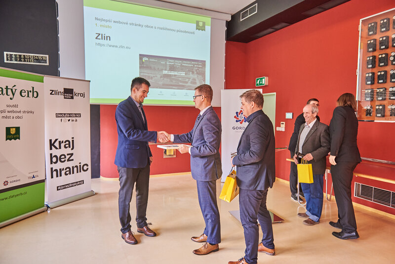 Ocenění zástupcům obcí s rozšířenou působností, které se letos nejvýše umístily v krajském kole soutěže Zlatý erb o nejlepší webové stránky, byla ve středu 5. dubna slavnostně předána na krajském úřadě ve Zlíně. Z vítězství se raduje Zlín, na druhé příčce se umístilo Uherské Hradiště, třetí místo obsadily Valašské Klobouky. Vítěz postupuje do celostátního kola soutěže. Oceněným přišli poblahopřát hejtman Zlínského kraje Radim Holiš a krajský radní pro digitalizaci Jiří Jaroš.