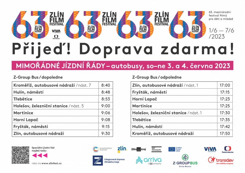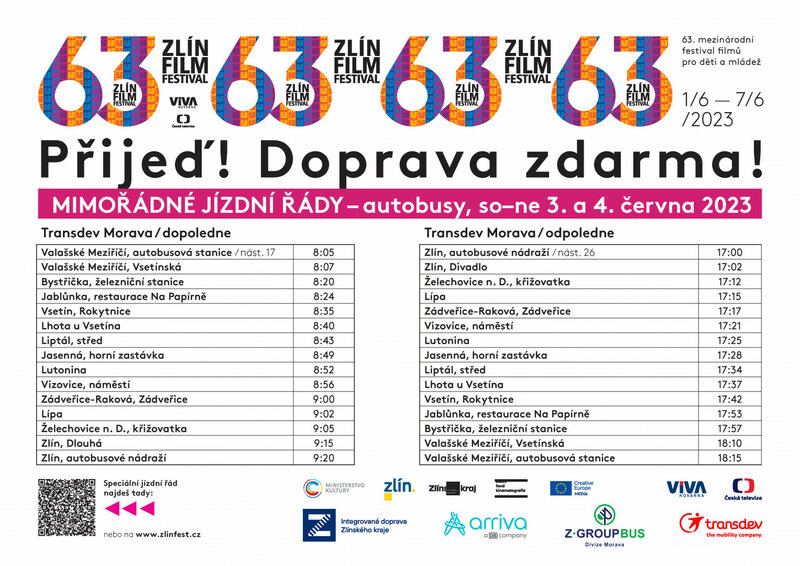 Koordinátor veřejné dopravy Zlínského kraje ve spolupráci s dopravci zajistil dva páry mimořádných autobusů na trasách Valašské Meziříčí - Vsetín - Vizovice - Zlín a Kroměříž - Holešov - Fryšták - Zlín a zpět. Zájemci o festivalový program se tak dopoledne dostanou dvěma bezplatnými linkami do Zlína a k večeru se opět budou moci stejnou trasou vydat zpět domů.