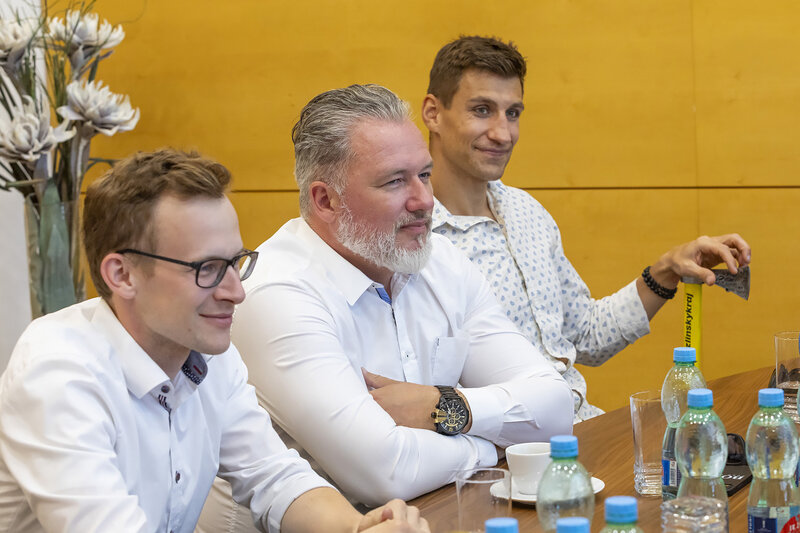 5. září v sídle Zlínského kraje hejtman Radim Holiš a radní Jiří Jaroš. Důležitým tématem společného setkání byla bezpečnost na stadionech.