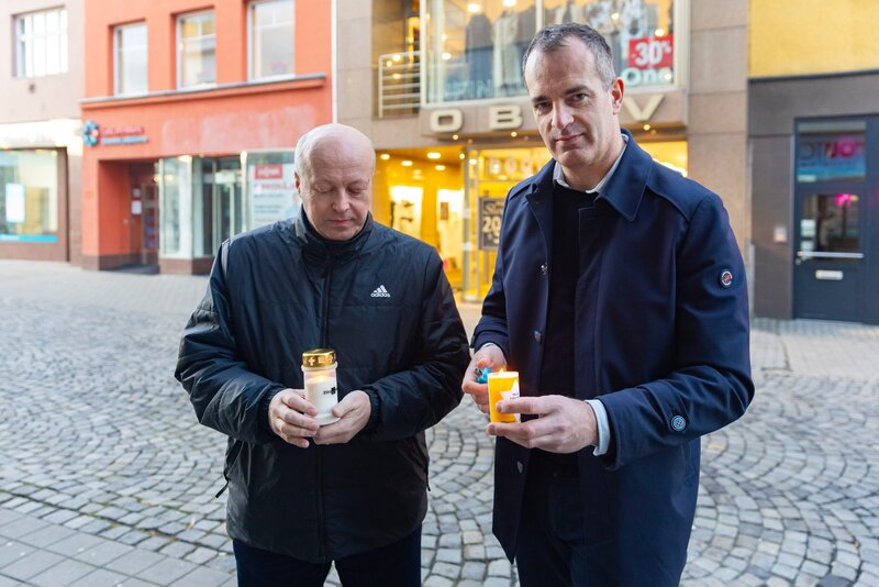 K uctění památky obětí holocaustu se připojil i Zlínský kraj. Statutární náměstek hejtmana Radek Doležel a náměstek David Vychytil se dnes zúčastnili pietní akce v Rašínově ulici ve Zlíně, kde zapálili jednu ze symbolických 80 svíček, které připomínají letošní výročí 80 let od konce 2. světové války a které byly Velvyslanectvím Státu Izrael rozeslány na různá místa po celé republice.