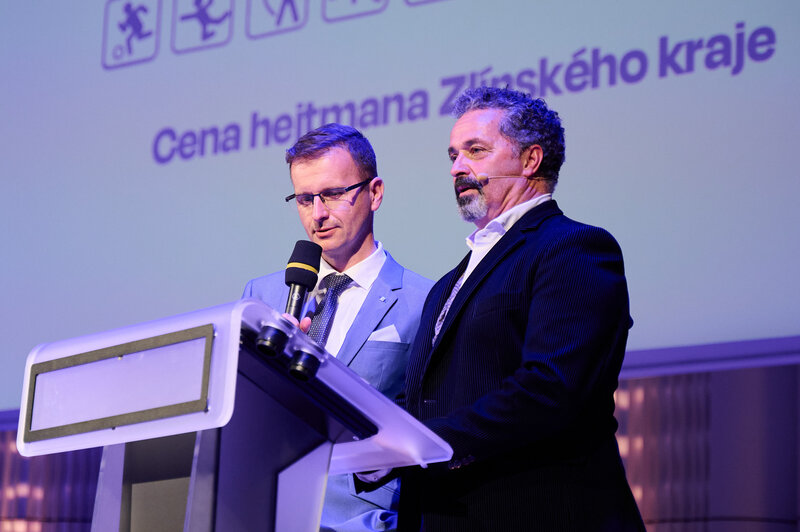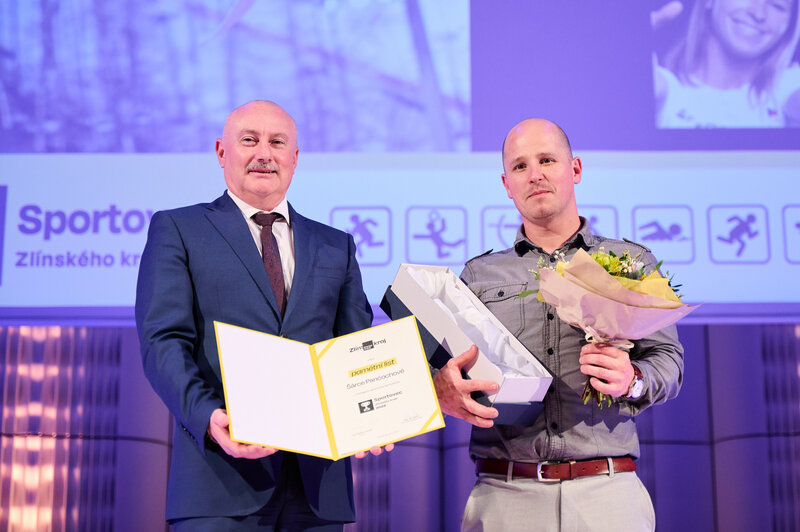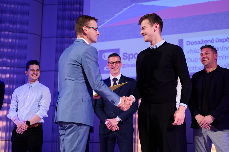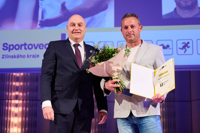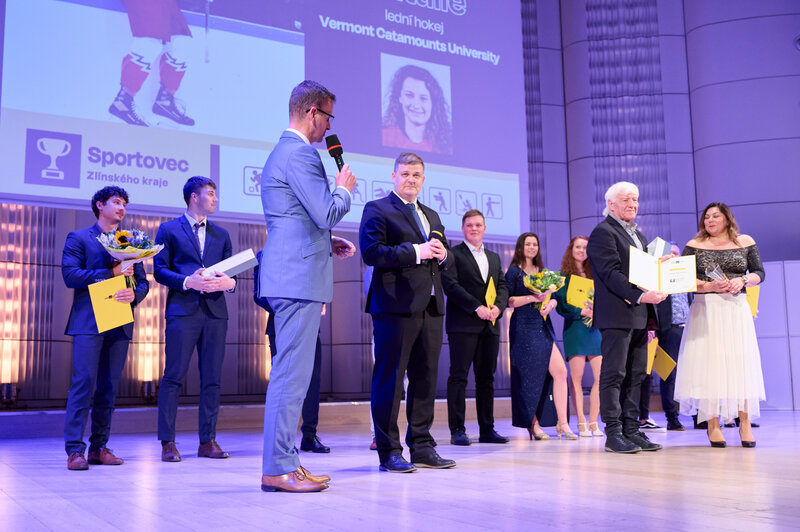 Sportovci obdrželi z rukou představitelů Zlínského kraje pamětní listy, květiny a ceny, které vznikly v ateliérech Střední uměleckoprůmyslové školy sklářské Valašské Meziříčí.