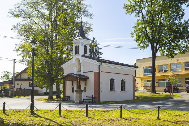↑ KAPLE. Ve středu obce se nachází kaple sv. Cyrila a Metoděje dokončená v roce 1897. Poutníci mohou na lavičce u ní nebo v přilehlém parčíku nabrat síly na další cestu a osvěžit se vodou z veřejného pítka.