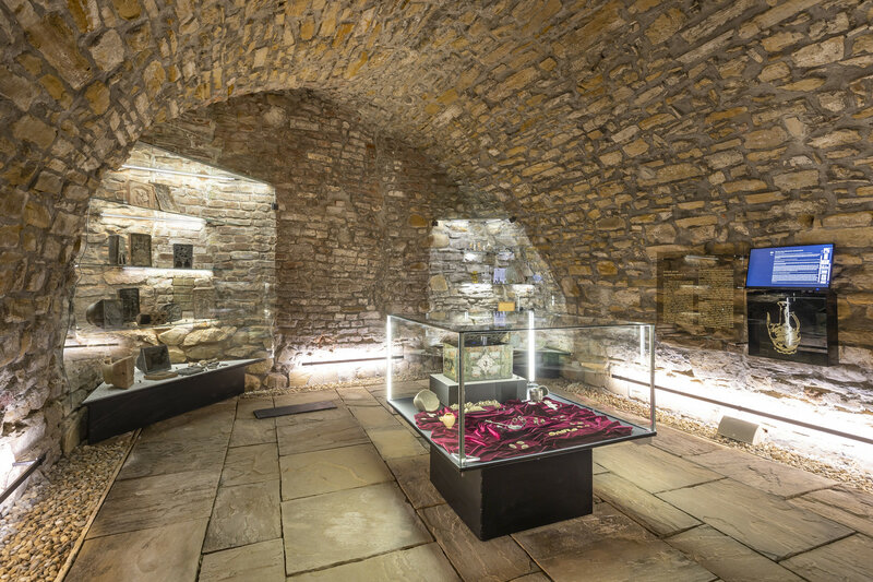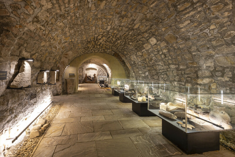 Ve sklepení muzea se nachází expozice Historie ukrytá pod dlažbou města. V tomto atraktivním prostředí jsou k vidění předměty od pravěku až do konce 17. století, například nálezy z odkrytých odpadních jímek a studní, doklady jídelníčku a hygieny, ale také mučicí nástroje a zbraně z období třicetileté války.