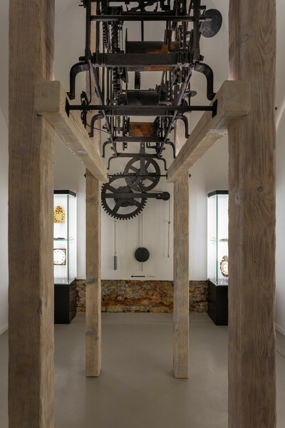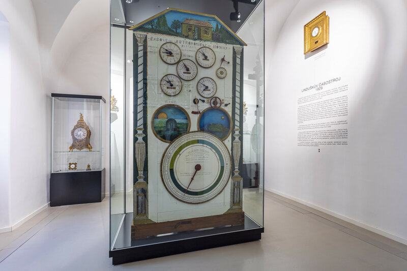 V expozici Strážci času je umístěn mimo jiné unikátní „časostroj“ sestavený roku 1929 bednářem Janem Linduškou. Má osm rozdílných ciferníků a je opatřen kalendářem s 13 měsíci. Přímo v expozici si můžete zkusit natáhnout závaží a rozkývat hodinové kyvadlo nebo se podívat na reálné znázornění funkce slunečních hodin.