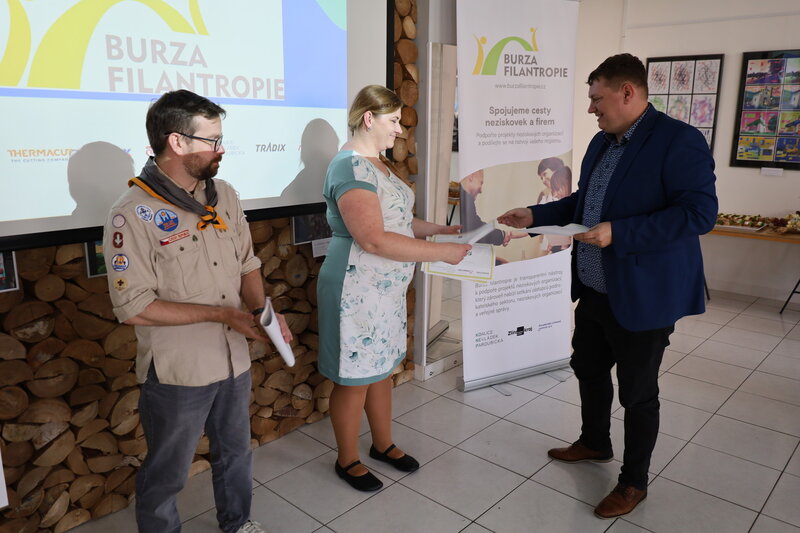 Na Burze filantropie v Uherském Hradišti své projekty prezentovaly tři organizace. Skautské středisko Psohlavci z Uherského Hradiště představilo svůj záměr na obnovu klubovny, spolek Mýtina projekt na vytvoření komunitního centra pro rodiče a děti a Charita Uherský Brod aktivitu zaměřenou na vznik mobilní kavárny, ve které by kávu vařili její klienti terapeutické dílny či sociální rehabilitace. Pro své projekty se jim podařilo nakonec získat dohromady 115 tisíc korun, a to od celkem šesti dárců. Byl mezi nimi i Zlínský kraj, který podpořil každý z těchto projektů částkou 10 tisíc korun. Symbolické šeky předal zástupcům organizací předseda výboru krajského zastupitelstva Jakub Zach.