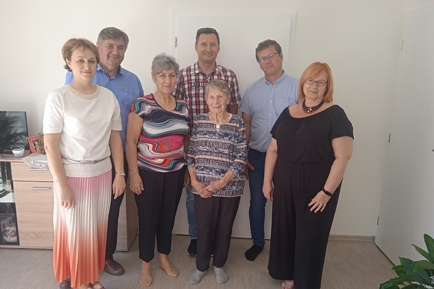 Součástí návštěvy obce byla i prohlídka Domu Kateřinka, nájemního bydlení pro seniory a rodiny s dětmi, kde jsou v současné době ubytované rovněž dvě rodiny z Ukrajiny. Areál vznikl z brownfieldu – bývalého zemědělského areálu uprostřed obce. Objekt je nízkoenergetický, s tepelnými čerpadly, retenčními nádržemi na využití dešťové vody. Každý z 13 bytů má svou vlastní malou zahrádku, několik bytů má i vlastní předzahrádku. V části domu bude i veřejná knihovna. Samozřejmostí je bezbariérovost prostor.