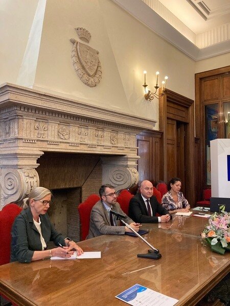 V rámci pracovního programu navštívila krajská delegace také radnici Metropolitního města Říma a setkala se s místostarostou Pierluigi Sannou a dalšími hosty. „Máme za sebou řadu jednání i podpis dohody o spolupráci mezi Zlínským krajem a právě touto italskou provincií. Ta se od 1. června stala oficiálním členem Sdružení Evropské kulturní stezky sv. Cyrila a Metoděje, stejně jako město Aquileia a polská Akademie Supraska. Pro Cyrilometodějskou stezku je to zcela mimořádný úspěch. Na římské radnici jsme také jednali o možnosti vytvoření značení stezky v samotném Říme a vyvedení směrem na sever metropole,“ vysvětlil náměstek hejtmana a předseda Sdružení EKSCM Lubomír Traub.
