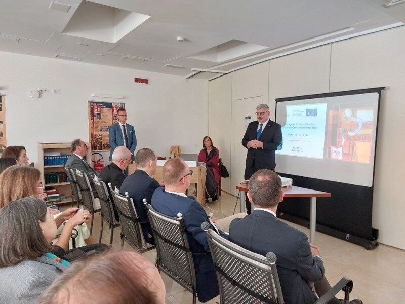 Středečního programu se zúčastnil také hejtman Zlínského kraje Radim Holiš. „Po setkání s papežem Františkem na Svatopetrském náměstí jsme absolvovali prezentaci Cyrilometodějské stezky před zástupci velvyslanectví při Svatém stolci ze Slovenska, Polska, Rakouska, Bulharska, Rumunska, Řecka, Severní Makedonie, Srbska, Černé Hory a Chorvatska. Někteří z nich okamžitě projevili zájem o další prezentace v jejich zemích a vyjádřili zájem o spolupráci,“ uvedl hejtman.