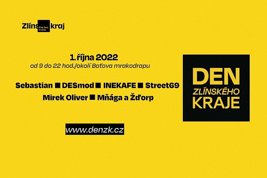 Už potřinácté se okolí zlínské Jednadvacítky zaplní stánky, atrakcemi a dobrotami z celého regionu. Tato akce je velkým dnem otevřených dveří do budovy Baťova mrakodrapu, kde sídlí Krajský úřad Zlínského kraje, a zároveň na vás čeká bohatý program i v dalších částech bývalého areálu firmy Svit. „Den Zlínského kraje se poprvé konal v roce 2010 a já jsem rád, že si tuto jedinečnou akci stále držíme a pokaždé se ji snažíme posunout zase o kus dál. Letos máme připraven opravdu pestrý program pro celou rodinu, kde si každý najde to své. Koncerty skvělých kapel, ochutnávku regionálních potravin a opět bude i něco pro sportovce. Akci jsme propojili se závody horských kol Zlínská 50 a k tomu si už podruhé zaběháme na počest Emila Zátopka a připomeneme si tak 100 let od jeho narození. Těšíme se na vás,“ zve hejtman Radim Holiš. Co Vás čeká? Oficiální zahájení akce bude 1. října 2022 v 9.00 na platformě 14I15 BAŤOVA INSTITUTU, kde vám po celý den budou hrát MIREK OLIVER, DESmod, INEKAFE, STREET 69, Mňága a Žďorp a Sebastian. Prostor mezi 14. a 15. budovou pak bude již tradičně patřit stánkům krajských organizací a lokálních producentů. Baťův mrakodrap Svezte se pojízdnou Baťovou pracovnou nebo vyjeďte až do 16. patra na terasu, kde je jedinečný výhled. Můžete využít hvězdářský dalekohled a pozorovat Slunce nebo si dát dobrou kávu s přáteli v nově otevřené kavárně. Atrakce pro celou rodinu Kopec zábavy čeká i malé i velké – vyzkoušet můžete dopravní hřiště, naučit se hravě třídit odpadky, projet se v kočáru s koňmi nebo na vlastní kůži vyzkoušet řemesla našich předků. Nebude chybět ani oblíbená prohlídka záchranky nebo hasičského vozu. Letošní novinkou je lidský stolní fotbálek, který určitě nesmíte minout, a na památku se nezapomeňte se vyfotit ve fotokoutku! Program včetně koncertů je ZDARMA a zdarma je zajištěna i doprava vlakem a autobusem. Kompletní program najdete na www.denzk.cz