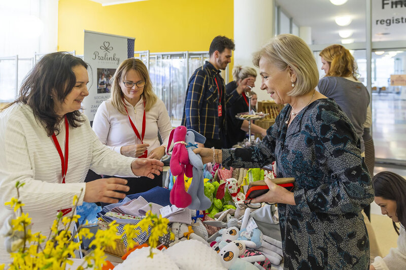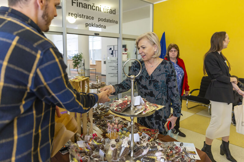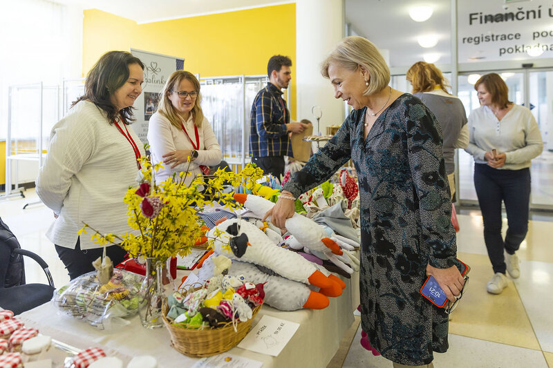 Pomlázky, keramiku, svíčky, perníčky, látkové panenky a další dekorace, rukodělné výrobky či pochutiny si mohli zakoupit návštěvníci dobročinného velikonočního jarmarku, který v úterý 1. dubna uspořádal Zlínský kraj ve svém sídle v Baťově mrakodrapu. Zúčastnili se jej i představitelé kraje včetně náměstkyně pro sociální věci a neziskový sektor Elišky Olšákové.