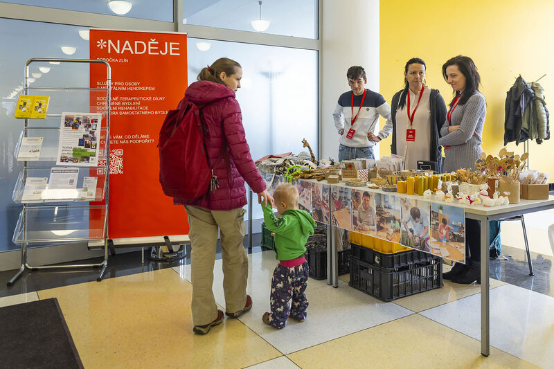 Své výrobky na jarmarku představilo několik chráněných dílen, sociálních podniků a další organizace ze Zlínského kraje. Koupí výrobků návštěvníci podpořili danou organizaci, její klienty i pracovníky.