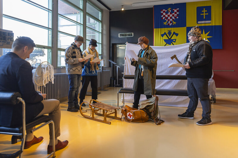 Polární výprava bez psů, zato s notnou dávkou humoru, nadsázky a nadšení. Expozici v Baťově mrakodrapu včera obsadili žáci ze speciální Základní školy a Mateřské školy Uherské Hradiště, Šafaříkova, kteří zde sehráli legendární cimrmanovskou hru Dobytí severního pólu.