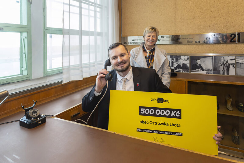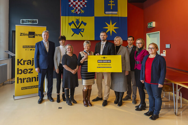 Symbolický šek na 500 tisíc korun předal dnes v sídle Zlínského kraje Radim Holiš zástupcům Ostrožské Lhoty v čele s jejím starostou Romanem Tuháčkem. Poskytnutí finančního daru obci Ostrožská Lhota v této výši schválili 11. prosince krajští zastupitelé, a to za vítězství v celostátním kole soutěže Vesnice roku.
