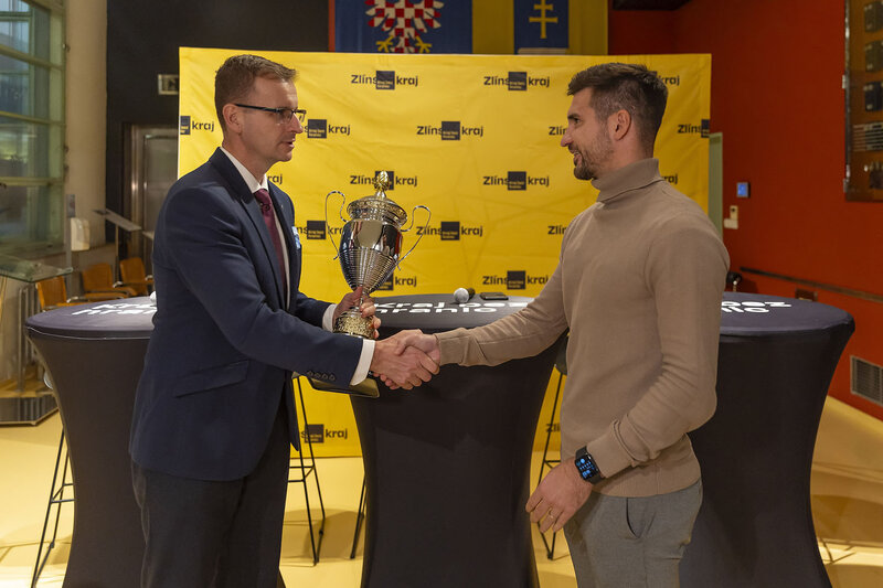 Fotbalisté Slovácka porazili před dvěma týdny v krajském derby mužstvo Zlína 2:0. Utkání, které bylo jubilejním třicátým měřením sil obou rivalů v nejvyšší fotbalové soutěži, bylo tentokrát výjimečné. Hejtman Radim Holiš se totiž rozhodl dát tradičnímu krajskému souboji nový náboj, vůbec poprvé se tak na hřišti kromě ligových bodů bojovalo také o pohár s názvem Vládci kraje. Ten dnes zástupcům vítěznému týmu hejtman předal v Baťově mrakodrapu, sídle Zlínského kraje.