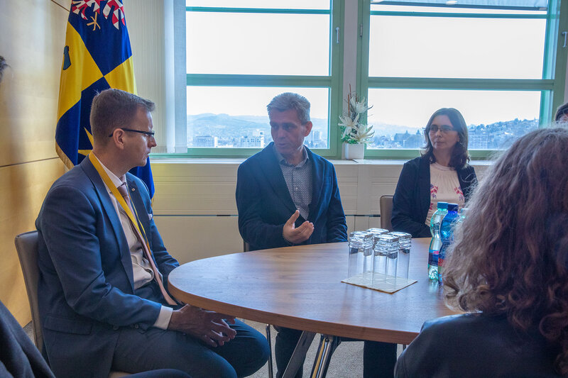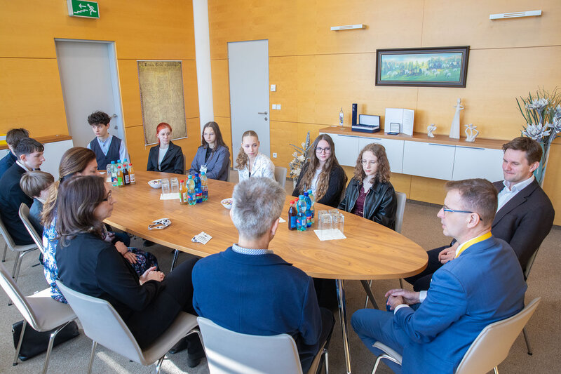 Mladí filmaři ze ZŠ Mariánské náměstí v Uherském Brodě, kteří se svým snímkem „Ploština“ uspěli v mezinárodní soutěži „Never again!“ a zaujali i nejvyšší představitele České republiky a Německa, zavítali do Baťova mrakodrapu ve Zlíně. Hejtman Zlínského kraje Radim Holiš je přijal a poděkoval jim za vynikající reprezentaci regionu. Setkání bylo oceněním jejich mimořádného úspěchu, díky němuž se zařadili mezi nejúspěšnější účastníky soutěže.