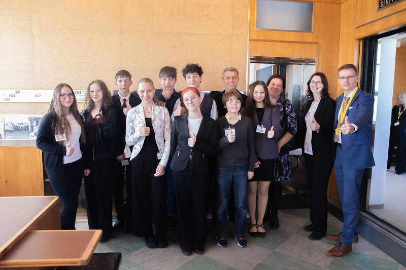 Do soutěže „Never again!“ se zapojilo více než 80 českých a německých škol, přičemž pouze šest z nich získalo nejvyšší ocenění a možnost představit své projekty nejvyšším představitelům obou zemí. Žáci ZŠ Mariánské náměstí spolupracovali na snímku „Ploština“ s partnerskou školou v německém Kranichfeldu. Ve svém filmu reflektovali dopady války na obyvatelstvo a propojili historické události s aktuálním děním ve světě. Snímek zároveň nese silné poselství „Válku už nikdy!“. Úspěšní mladí filmaři měli před časem příležitost prezentovat svou práci také v Berlíně před prezidentem České republiky Petrem Pavlem a německým prezidentem Frankem-Walterem Steinmeierem.