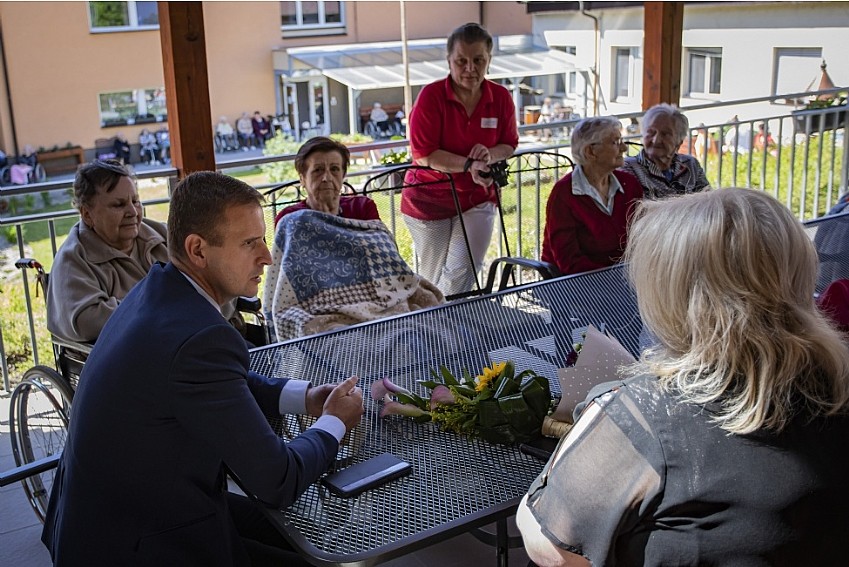 „Chtěl bych poděkovat paní ředitelce a celému týmu, protože jejich práce je tu vidět na každém kroku. Zařízení je udržované, moderně vybavené a o klienty je tu dobře postaráno,“ vyzdvihl hejtman při setkání s klienty, pro které byl venku připravený dopolední program s muzikou.