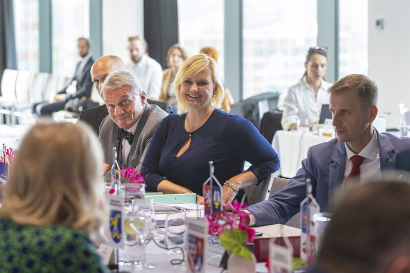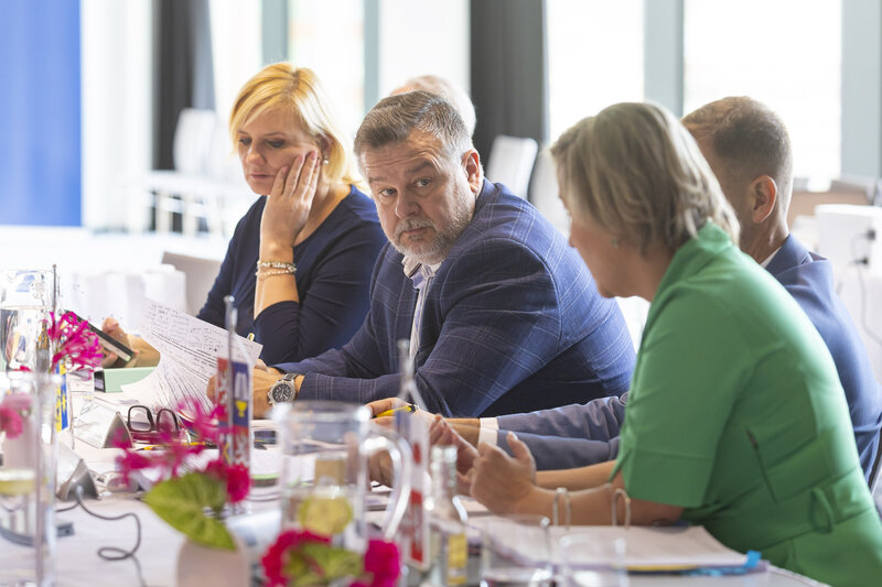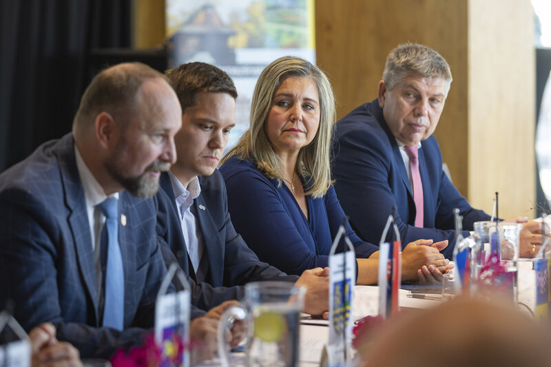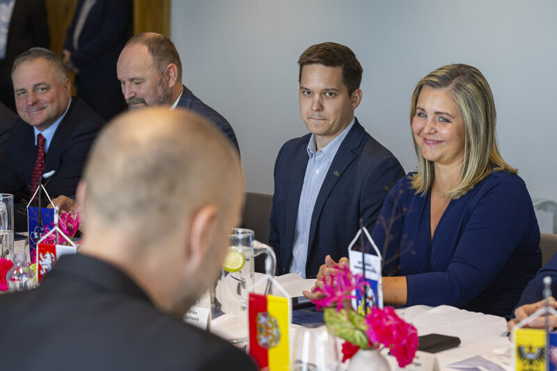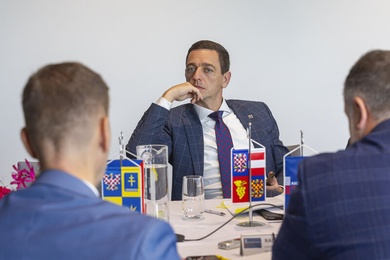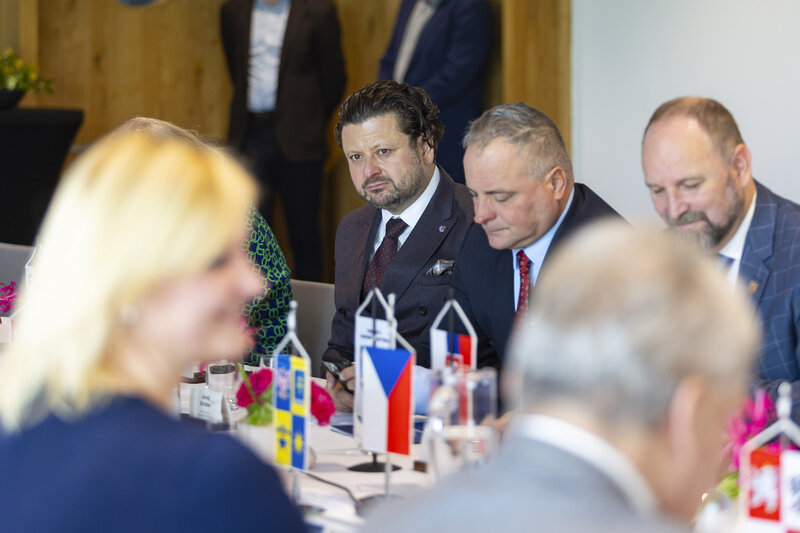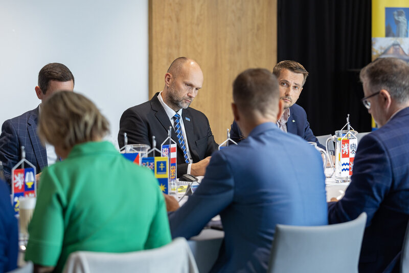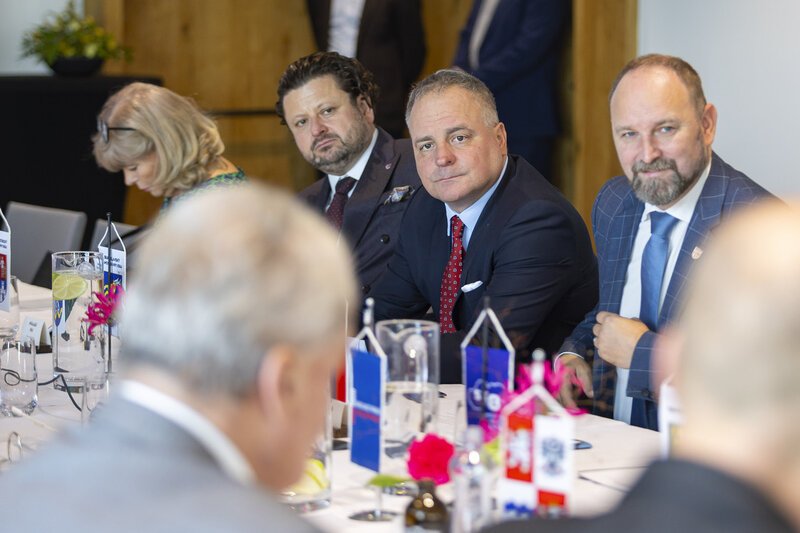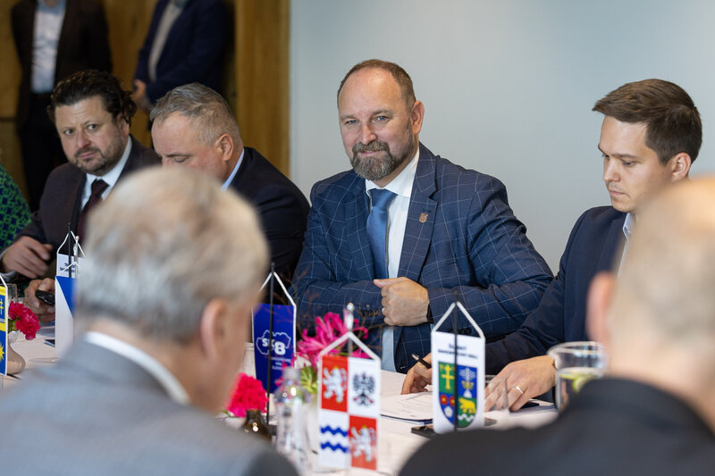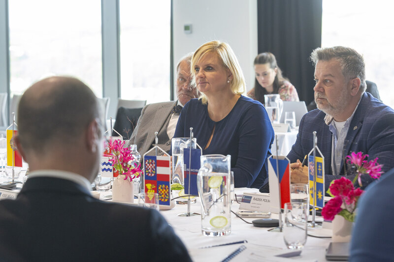 Odpoledne se k českým hejtmanům připojili jejich slovenští kolegové ze sdružení Samosprávne kraje Slovenska (SK8) a společně diskutovali hlavně o možnostech přeshraniční spolupráce. Debata se zaměřila na praktické oblasti, kde mohou české a slovenské regiony intenzivně spolupracovat. Patří k nim například koordinace dopravních spojů a možnost cestování na jednu jízdenku v obou zemích, napojení dálniční a cyklistické infrastruktury, ale i spolupráce složek integrovaného záchranného systému, fungování letecké záchranné služby nebo zjednodušení podmínek čerpání prostředků z evropských fondů. Hovořilo se také o Evropském hlavním městě kultury 2026, jímž bude slovenský Trenčín, školských projektech či decentralizaci veřejné správy.
