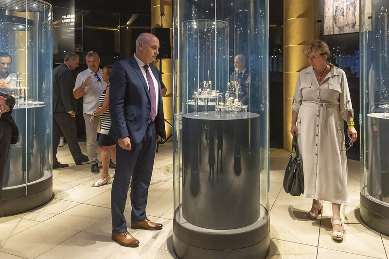 „Až doposud nebyl na celé Moravě výstavní objekt, který by splňoval bezpečnostní opatření pro vystavení velmi cenných historických exponátů. To naše klenotnice umožnuje. Jde totiž o podzemní monolitický objekt s veškerým zabezpečením proti krádeži i poškození,“ připomněl při otevření starosta Modré Miroslav Kovářík, který při této příležitosti od hejtmana Radima Holiše dostal originální dárek v podobě živého kohouta.