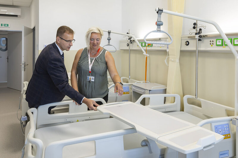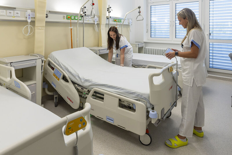 „Na naší lůžkové stanici v sedmém nadzemním podlaží vzniklo osm třílůžkových pokojů plus dva jednolůžkové nadstandardní pokoje. Každý má své sociální zařízení i klimatizaci, což bude komfortnější pro naše pacienty, moderní zázemí získali i zdravotníci,“ doplnil doc. Vladimír Kojecký, primář Interního oddělení.