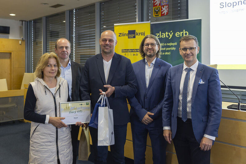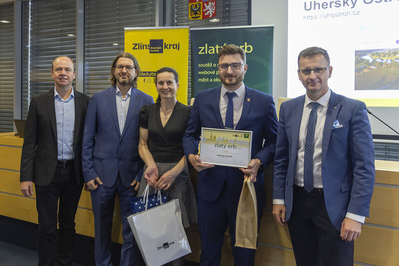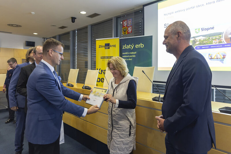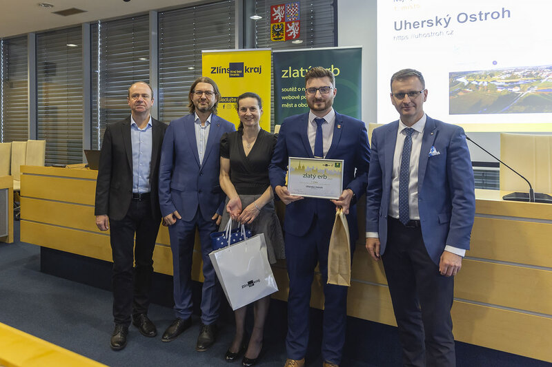 Ocenění zástupcům obcí, které letos uspěly v krajském kole soutěže Zlatý erb o nejlepší webové stránky, předal v pátek 25. dubna na krajském úřadě hejtman Zlínského kraje Radim Holiš společně s ředitelem soutěže Martinem Lukášem. V letošním ročníku soutěže hodnotila odborná porota weby obcí, které nejsou obcemi s rozšířenou působností (ORP). Z vítězství ve Zlínském kraji se raduje Uherský Ostroh, na druhé příčce se umístil Slavičín, třetí místo obsadilo Slopné.