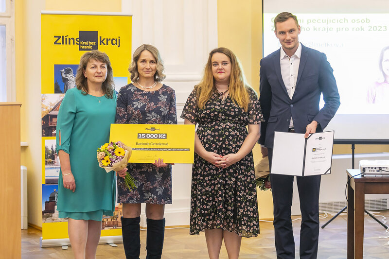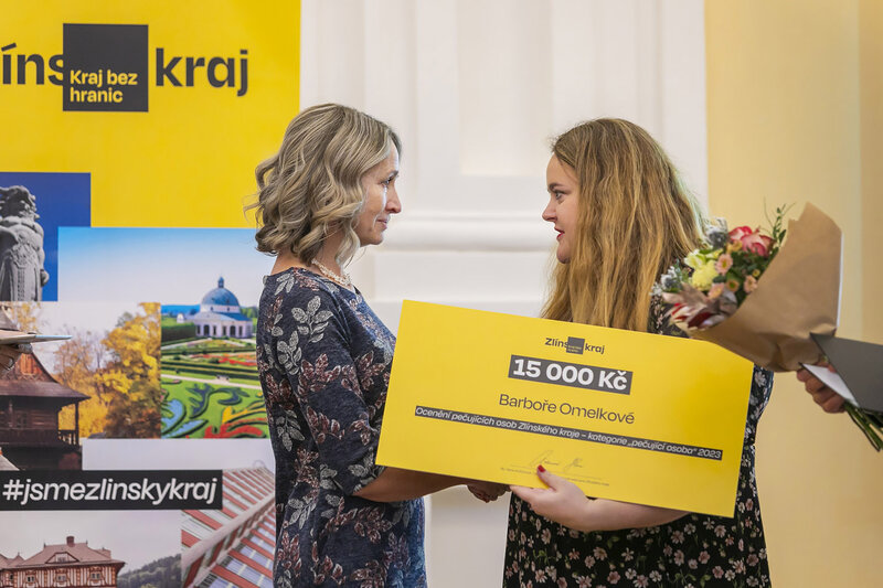 Představitelé Zlínského kraje včera vyznamenali osoby pečující v domácím prostředí o blízkého člověka, který se ze zdravotních důvodů neobejde bez pomoci druhých. Ocenění si z holešovského zámku odnesli Barbora Omelková z Ostrožské Nové Vsi, Petra Trlicová z Ústí, Ludmila Žitníková z Velkých Karlovic, Hana Hráčková z Kunovic (okres Uherské Hradiště), Karel Křenek z Dolní Bečvy a Marie Šimoníková z Brumova-Bylnice.