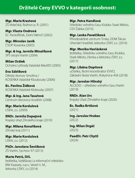 Součástí akce bylo i slavnostní předání Cen EVVO 2025, které letos připomnělo 25 let tradice oceňování lidí a institucí přispívajících k rozvoji environmentálního vzdělávání ve Zlínském kraji.