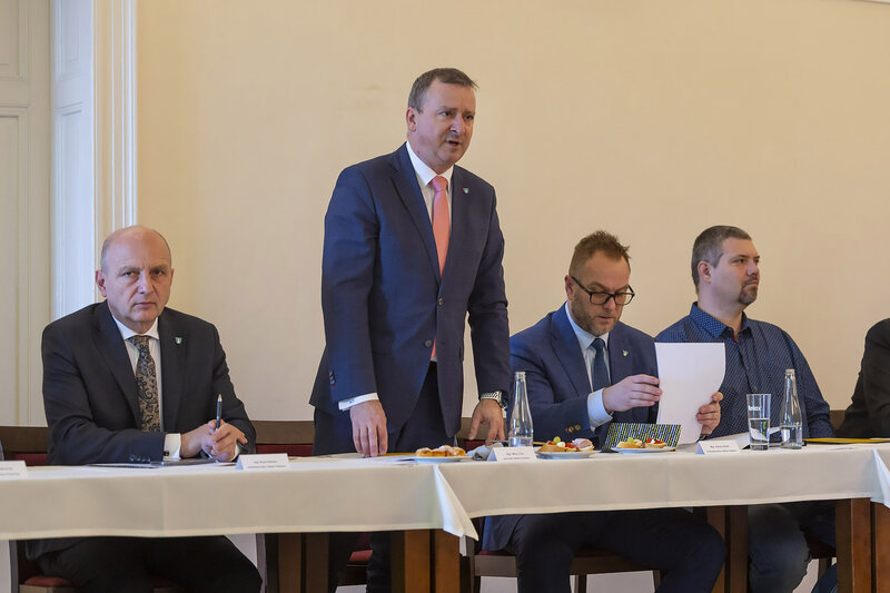 „Řešili jsme se také nové výzvy, které nás čekají s rozvojem průmyslové zóny a dokončením dálnice D49. Současně jsme starosty vyzvali, aby se připojili k programu na podporu rozvoje regionu a bydlení, který pro ně máme připravený,“ uvedl hejtman Radim Holiš.