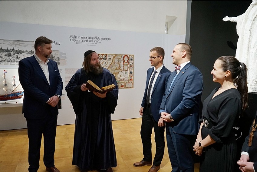 ZLÍNSKÝ KRAJ – V pondělí 28. března byla v Muzeu Jana Amose Komenského v Uherském Brodě otevřena nová stálá expozice ´Na jevišti světa´, kterou muzeum připravilo k 430. výročí narození zakladatele moderní pedagogiky označovaného za učitele národů. Slavnostního přestřižení symbolické pásky se ujali ministr kultury Martin Baxa, hejtman Zlínského kraje Radim Holiš, starosta Uherského Brodu Ferdinand Kubáník, ředitel muzea Miroslav Vaškových a houslista Jaroslav Svěcený.