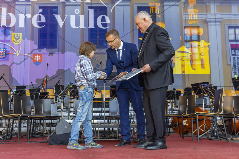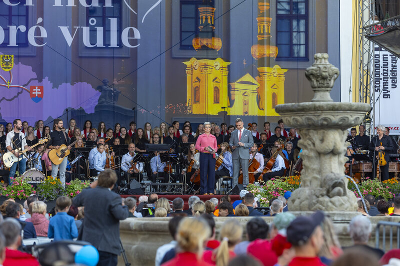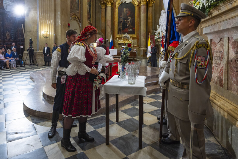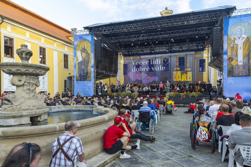 Ve čtvrtek v podvečer zazněla za přítomnosti představitelů církve a osobností veřejného života ve velehradské bazilice Modlitba za vlast. Na ni navázal benefiční Večer lidí dobré vůle, spojený s prezentací vzdělávacích a charitativních projektů, na němž na nádvoří před bazilikou vystoupili například zlínská Filharmonie Bohuslava Martinů pod vedením dirigenta Stanislava Vavřínka, Jiří Pavlica s Hradišťanem nebo kapela Jelen.