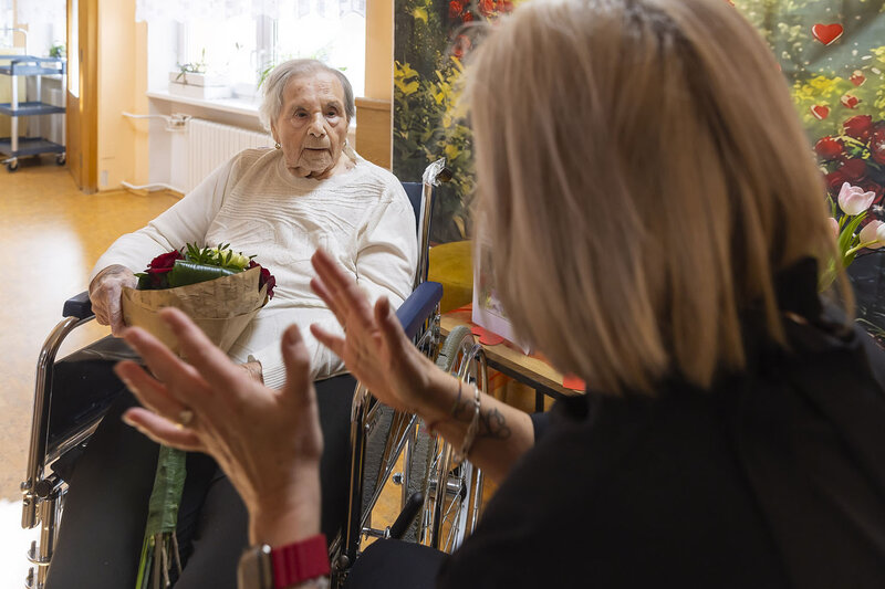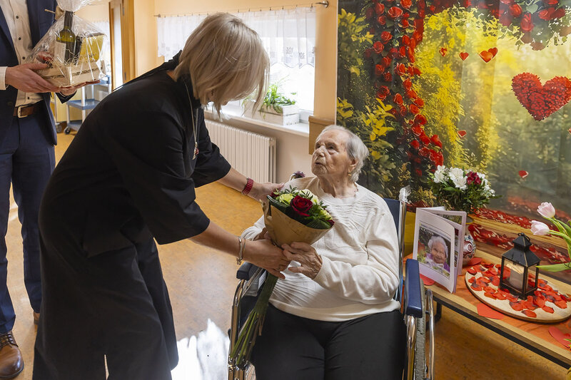 ZLÍNSKÝ KRAJ – Paní Andělínu Veverkovou, která oslavila 101. narozeniny, navštívila v pondělí 17. února v Domově pro seniory Lukov náměstkyně hejtmana pro sociální věci Eliška Olšáková. Jubilantce poblahopřála, předala jí kytici a dárkový balíček a v příjemné atmosféře si s ní i popovídala.
