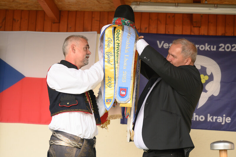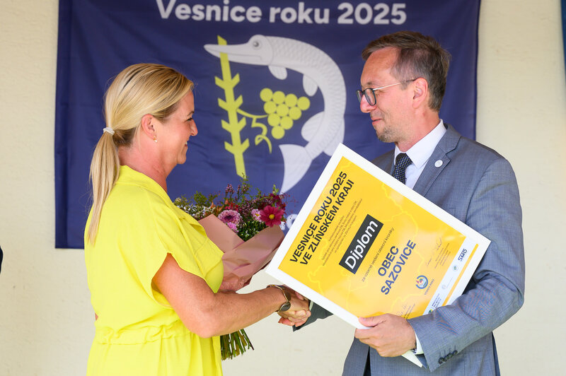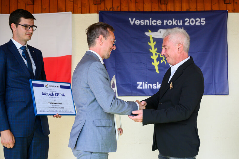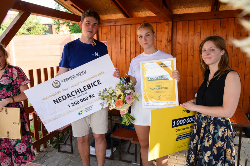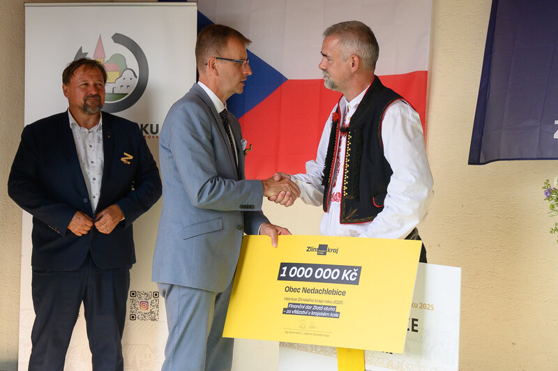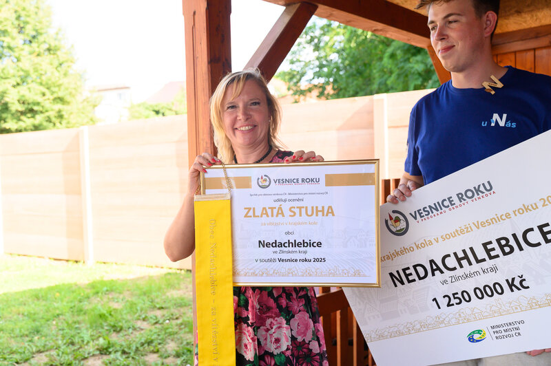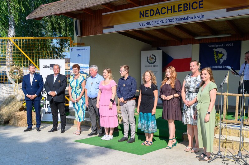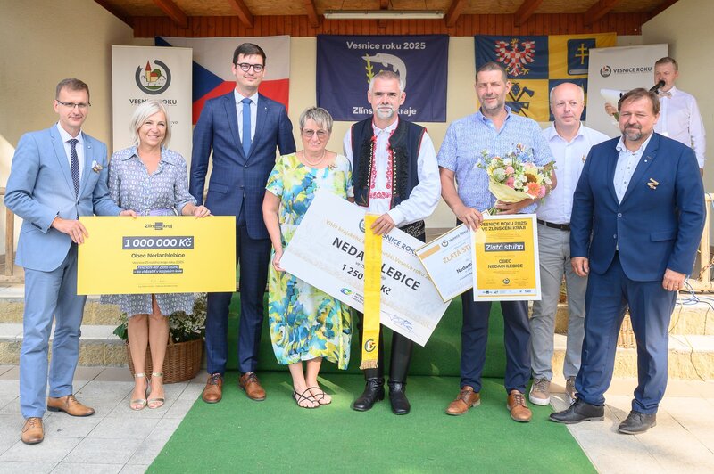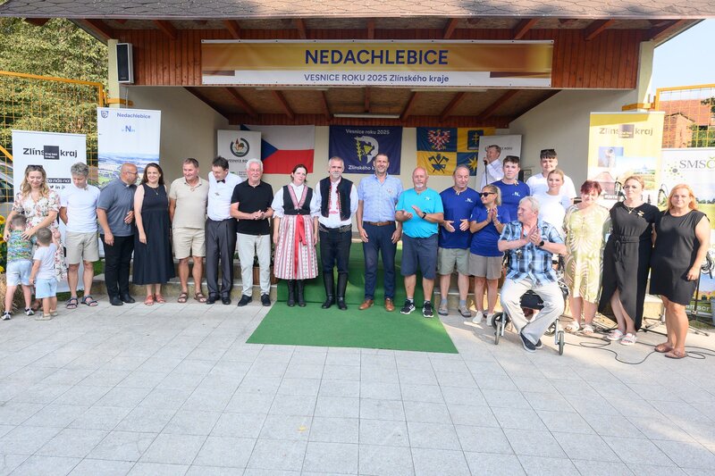 Zlatou stuhu za vítězství v krajském kole soutěže Vesnice roku 2025 si včera na slavnostním ceremoniálu v Nedachlebicích převzal starosta obce Josef Jandouš. Ocenění obdrželi také zástupci dalších obcí. Nedachlebice postoupily do celostátního kola soutěže, v němž je Zlínský kraj se sedmi vítěznými obcemi historicky vůbec nejúspěšnějším krajem ze všech. Předávání se zúčastnili radní Zlínského kraje v čele s hejtmanem Radimem Holišem či zástupci vyhlašovatele soutěže, jímž je Spolek pro obnovu venkova ČR.