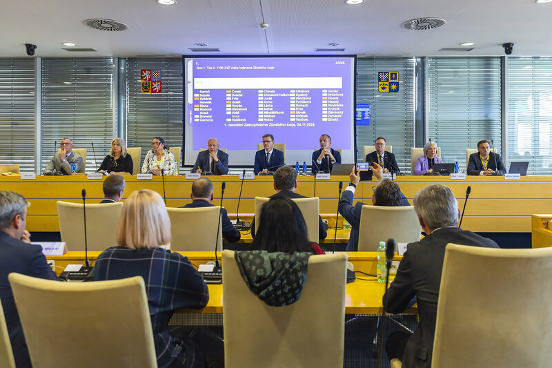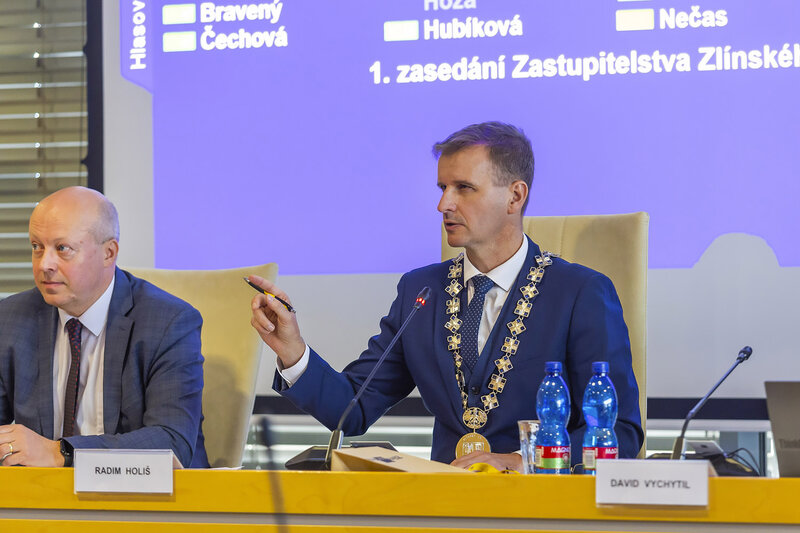 Složením slavnostního slibu nových zastupitelů začalo dnes v sídle Zlínského kraje jejich první zasedání po zářijových krajských volbách. Zastupitelé poté zvolili devítičlennou Radu Zlínského kraje v čele s hejtmanem Radimem Holišem. Šest křesel v ní obsadilo hnutí ANO 2011 a tři křesla uskupení Starostové pro Zlínský kraj s podporou TOP 09 a Zvuk12 (STAN).