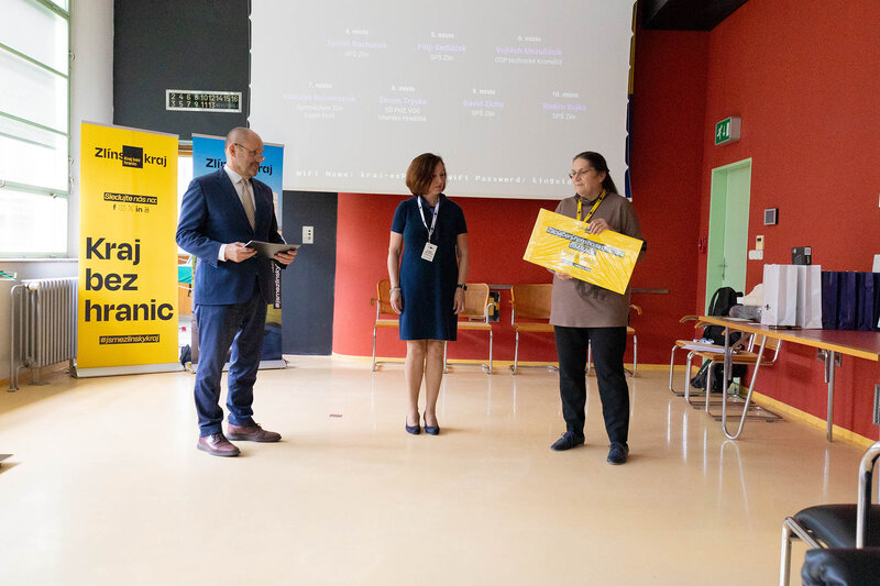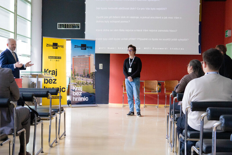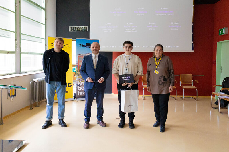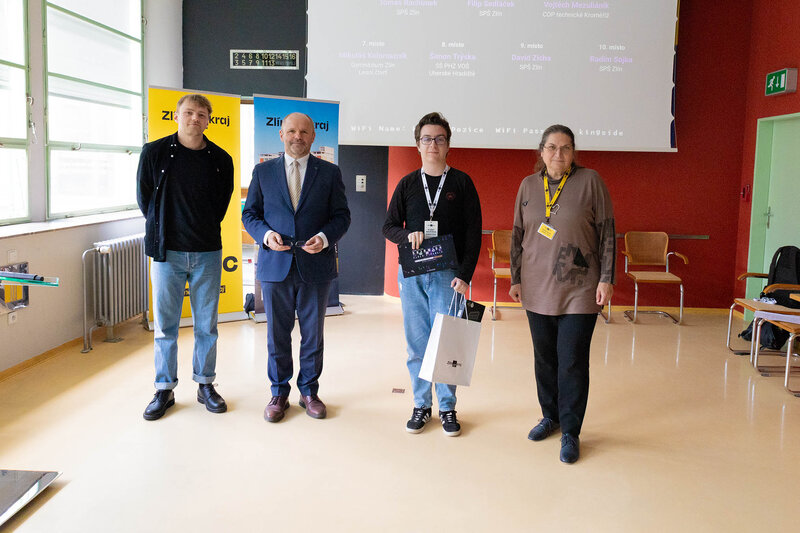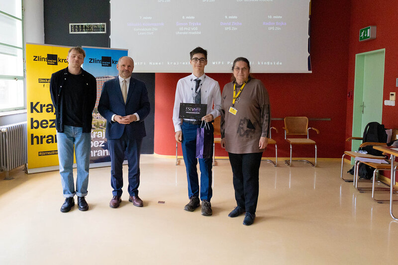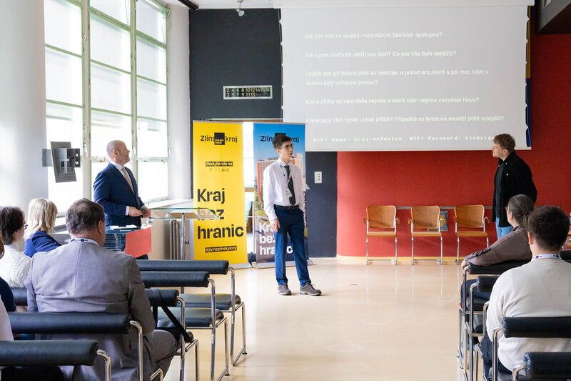 Vítězové krajského kola středoškolské soutěže Haxagon Skirmish Czech Republic 2025 v IT a kybernetické bezpečnosti si v budově úřadu převzali ocenění z rukou radní Zlínského kraje pro oblast školství Jindry Mikuláštíkové. Dva nejúspěšnější žáci, David Hovorka z Gymnázia Uherské Hradiště a Samuel Huf ze Střední školy filmové, multimediální a počítačových technologií s. r. o., postupují do celostátního kola, které se koná 20. května v Praze.
