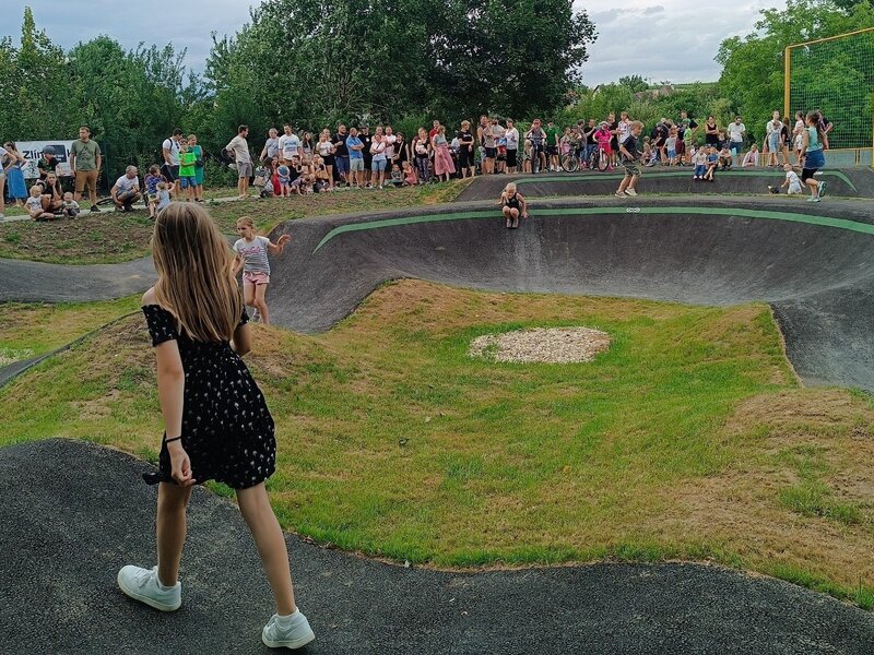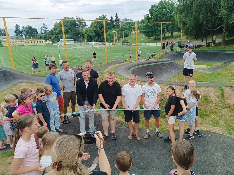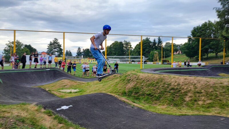 Pumptrack vznikl na obecním pozemku v areálu sportoviště a po slavnostním otevření je volně přístupný veřejnosti.