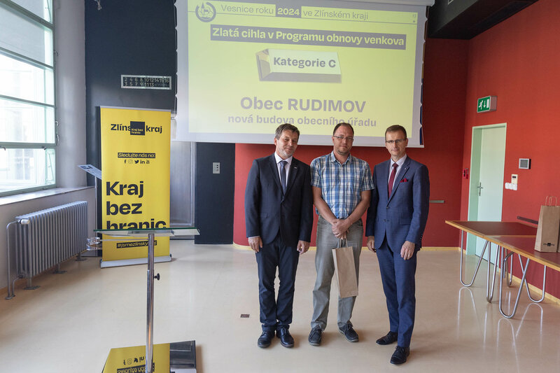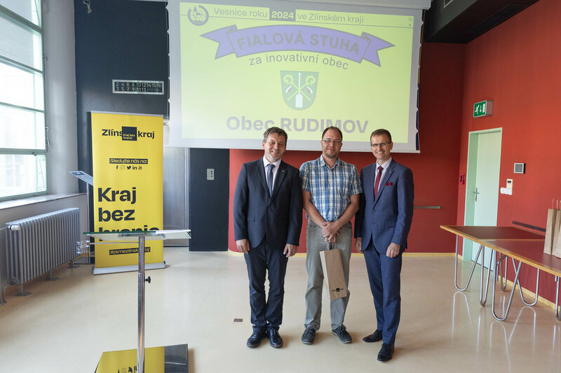 Fialová stuha za inovativní obec byla udělena obci Rudimov, kde se nachází nová budova obecního úřadu, která díky fotovoltaickým panelům a tepelnému čerpadlu dosahuje aktivního energetického standardu. Obec plánuje instalovat solární panely i na další své budovy a dokonce má připraven projekt komunálního elektromobilu. V areálu místního biotopu najdou návštěvníci samoobslužný bufet, kde lze platit pomocí QR kódu. V přípravě mají také projekt na samoobslužnou prodejnu. Součástí ocenění je finanční dar 160 tisíc korun od Zlínského kraje a 300 tisíc korun od Ministerstva pro místní rozvoj.