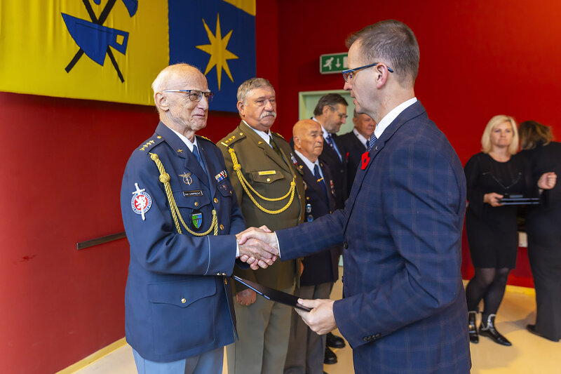 „Jsme tady dnes společně se zástupci armády a výsadkových veteránů, abychom poděkovali lidem, kteří aktivně a vytrvale připomínají hrdinství a odkaz těch, kdo bojovali za naši svobodu a často za ni položili i svoje životy,“ uvedl hejtman Radim Holiš.