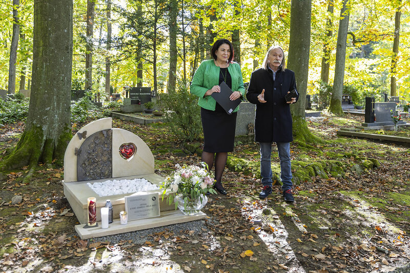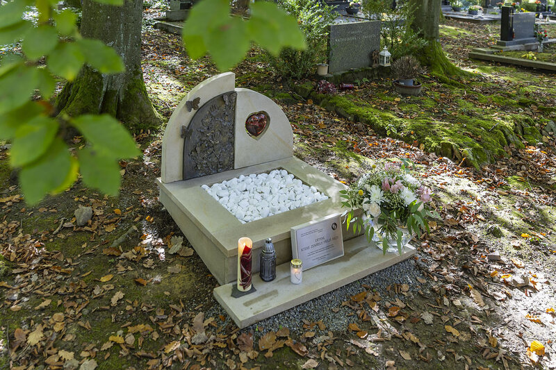 Autorem výsledné podoby pietního místa, kdy zadní část náhrobku tvoří pískovcová deska s rubínovým srdcem odlitým ze skla, je zlínský akademický malíř Miroslav Boroš. Zhotovení projektu vyšlo celkem na 150 tisíc korun.